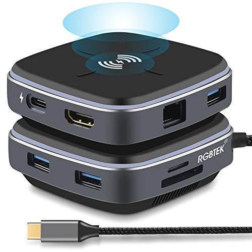 Price review USB C Hub, 9 in1 USB C Docking Station to HDMI, Wireless Charger, Gigabit Ethernet, 3 USB 3.0, 60W PD RJ45,SD/TF Card Reader, USB C Dock for MacBook Pro2020 and Type C Device (Thunderbolt 3)